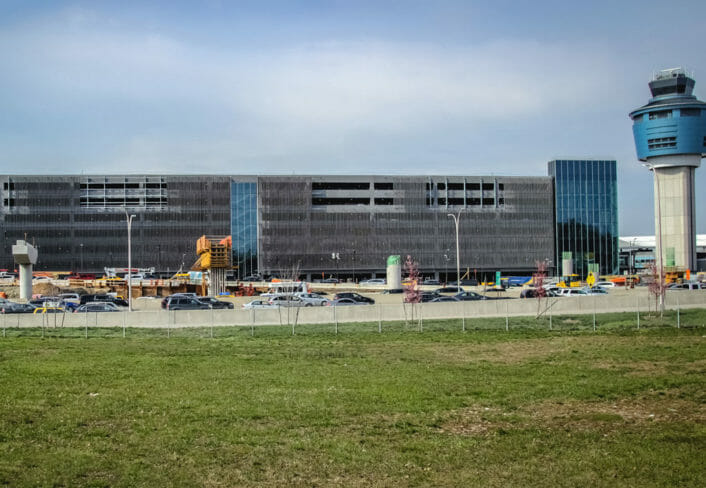 Follow signs for 94th street from baggage claim or utilize your navigation device and please allow yourself additional time upon arrival and return due to laguardia airport construction.